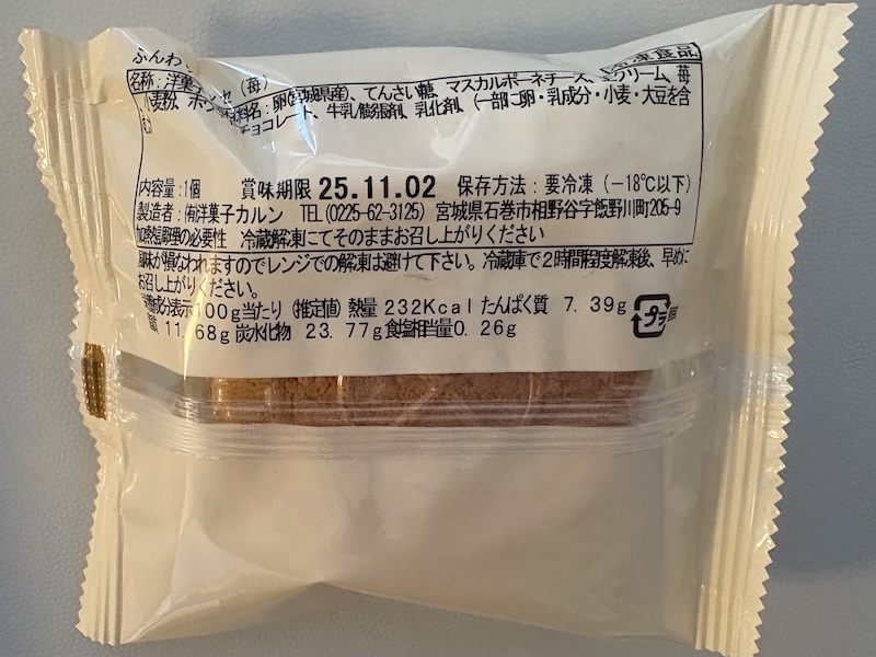 - 特徴:宮城県産の卵と牛乳を使用した生地で、マスカルポーネチーズ、生クリーム、苺、ホワイトチョコレートなどを合わせた特製クリームを挟んでいます。